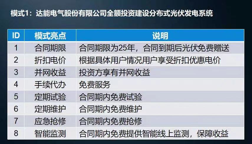 能电气提供两种光伏发电合作模式,可选择企业自建及合同能源管理模式。企业采用自投模式,在发电全消纳的情况下,约3-4年左右时间回本,电站可连续发电25年,发电收益有保证。企业也可采用合同能源管理模式,由第三方进行投资建设,减少一次性投资支出,电站发电优先供企业使用,比享受8.5-9折目录电费优惠。